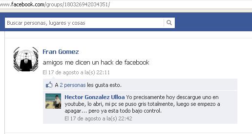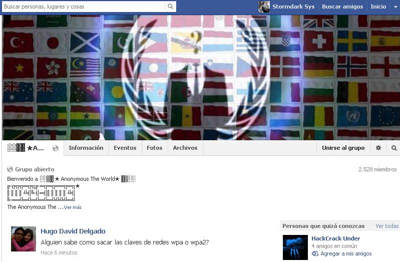 Hace un momento estaba webeando en el facebook cuando video salvaje aparece xD (pinches memes), un video cagado de anonymous como la mayoria que hacen convocando a nose que mierdas porque lo pause luego luego para leer los comments y me fije que en la descripcion habia un link el cual me regresaba a un grupillo en facebook y al leer lo que posteaban no maaaaameeen!!! pinche extreme motherfucking facepalm masomenos asi: