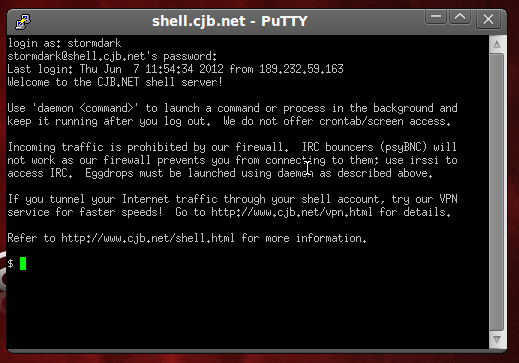 Bueno, en este post explicare como hacer ssh tuneling en una plataforma linux, para empezar necesitamos crearnos una cuenta (free) en la siguiente pagina http://www.cjb.net/cgi-bin/shell.cgi?action=signup