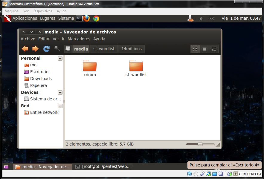 La carpeta la encontraremos en la carpeta /media, en mi caso comparti una carpeta llamada wordlist